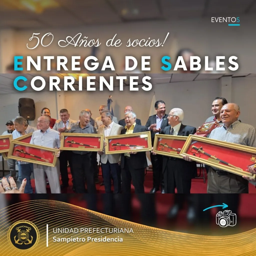 En un emotivo acto que nos enorgullece haber retomado durante la presente gestión, el Presidente de la entidad, AM (RE) Gabriel Sampietro, hizo entrega del sable a los asociados que cumplieron 50 años junto al Cïrculo de Suboficiales.