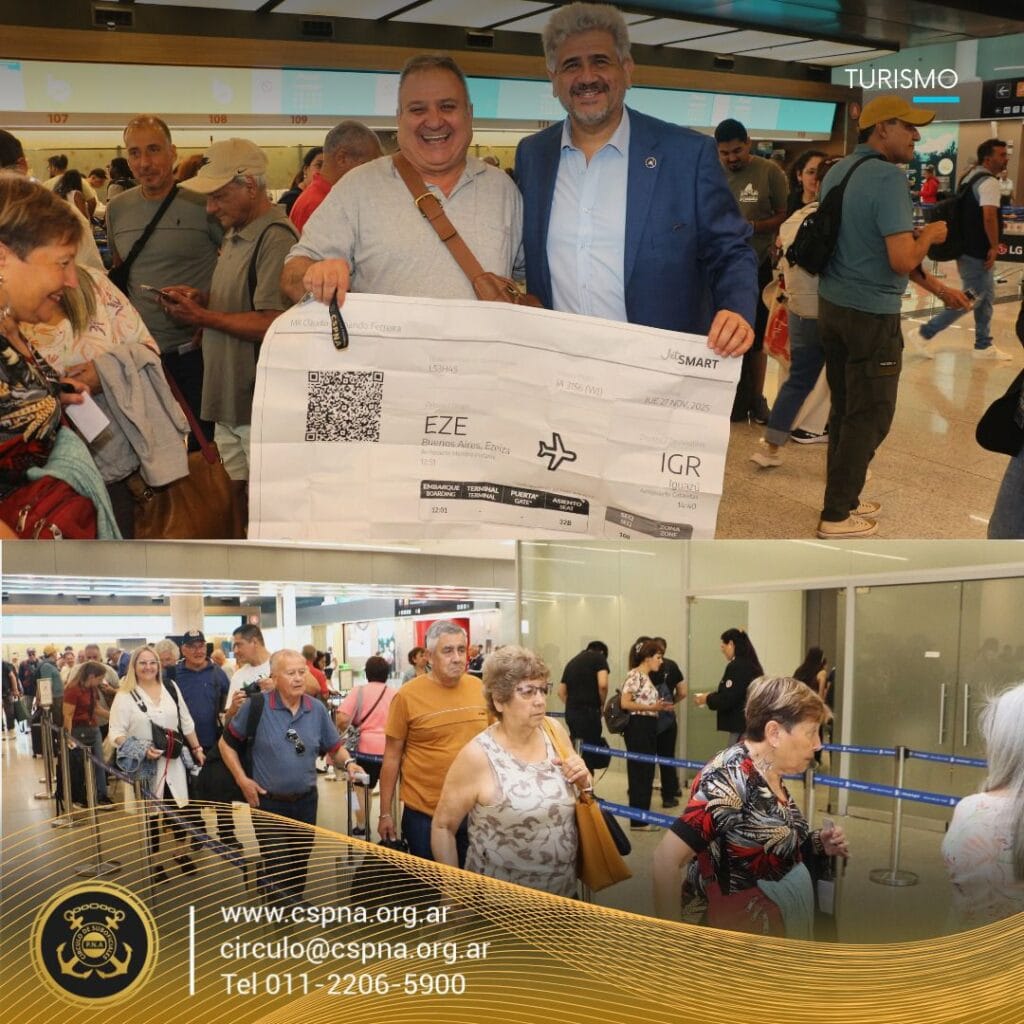 En la mañana del 27 de noviembre, un numeroso grupo de asociados inició su tan esperado viaje a Cataratas del Iguazú, partiendo desde el Aeropuerto Internacional de Ezeiza. Con gran entusiasmo, equipaje en mano y la alegría propia de quienes se preparan para vivir una experiencia inolvidable, comenzó oficialmente esta travesía organizada por nuestra institución.