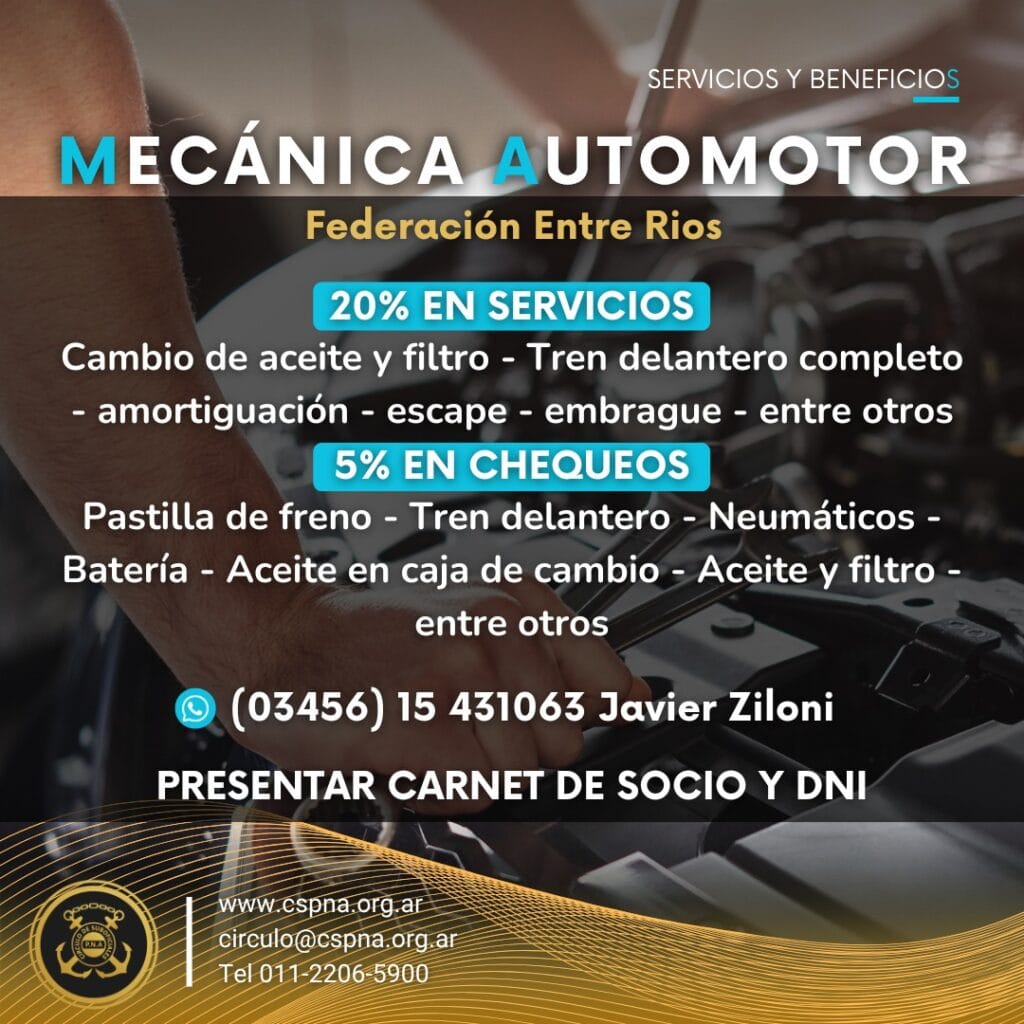 Gracias a la gestión encabezada por el AM (RE) Gabriel Sampietro, nuestros asociados cuentan con un nuevo convenio en servicios de mecánica automotor en la ciudad de Federación, Entre Ríos.